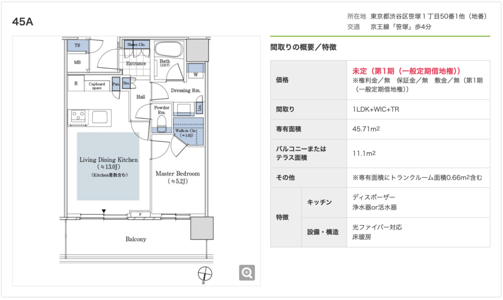 - パークタワー渋谷笹塚 (間取り図 45A)
