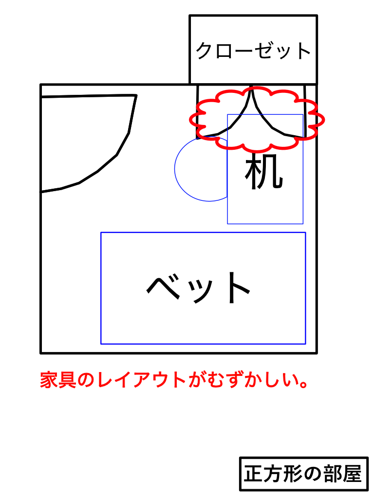 - 部屋の形が正方形のプランは選ばないようにしよう。