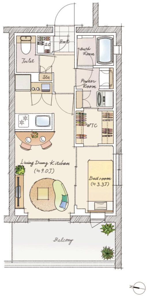 1LDKの間取りを選ぶ際には、柱の配置、部屋の形、廊下の長さなど、日々の生活を快適にするポイントをしっかり確認しましょう。特にリビングと洋室が横並びになっているプランや対面キッチンなど、生活動線を意識した間取りが理想的です。しかし、完璧な間取りはないので優先順位をつけて決めていきましょう。