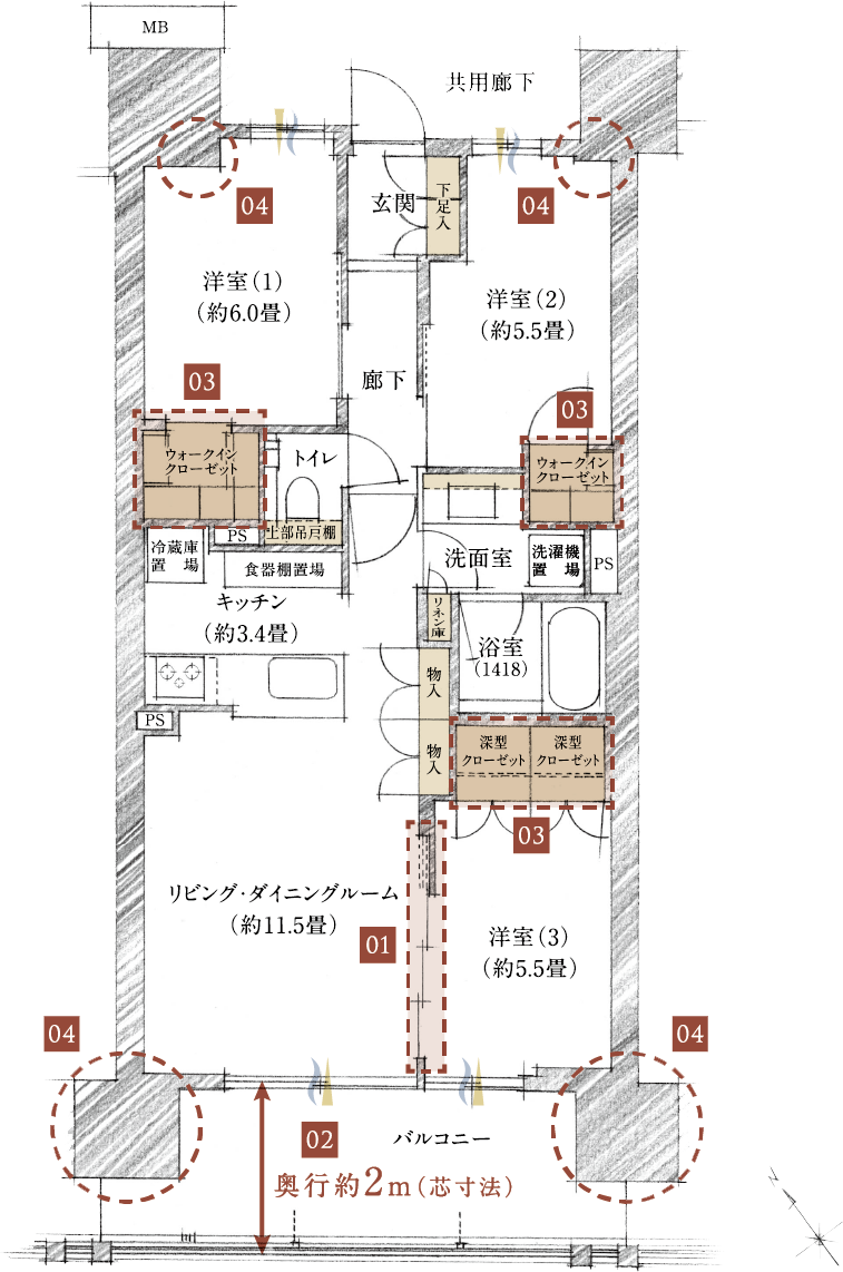 Bタイプ (74.65㎡) 間取りについて