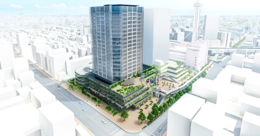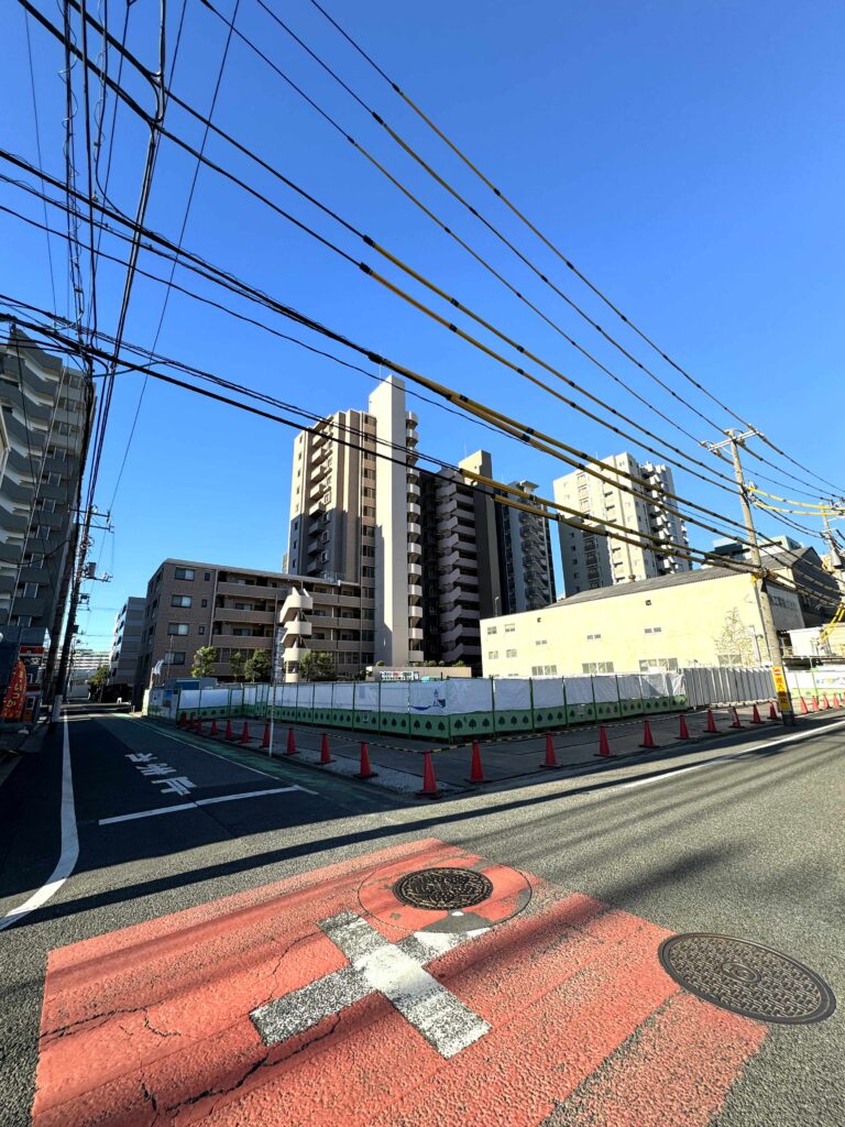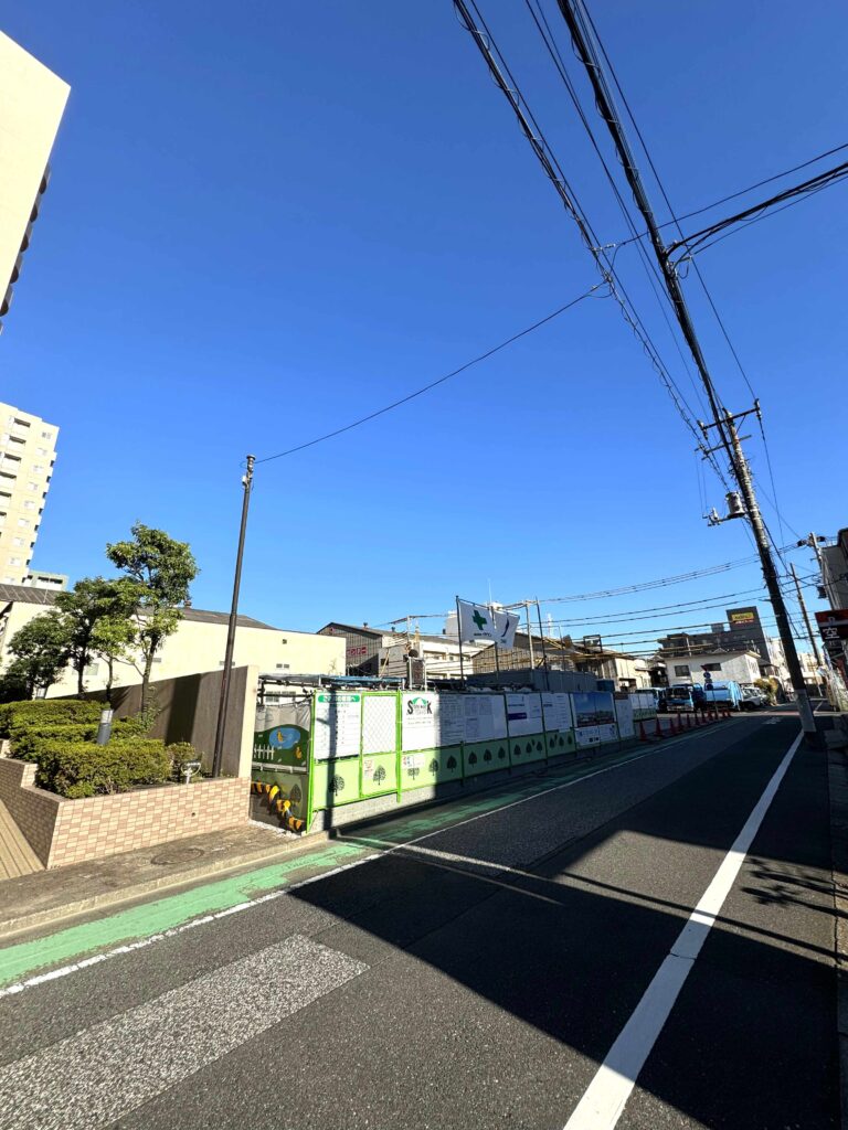 敷地は駅前なので大きな建物が多めですが、敷地南側は大きな建物がないので抜け感はあります。