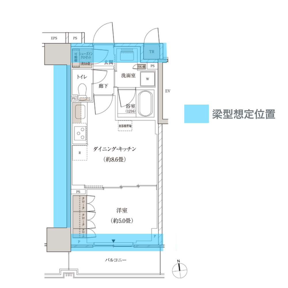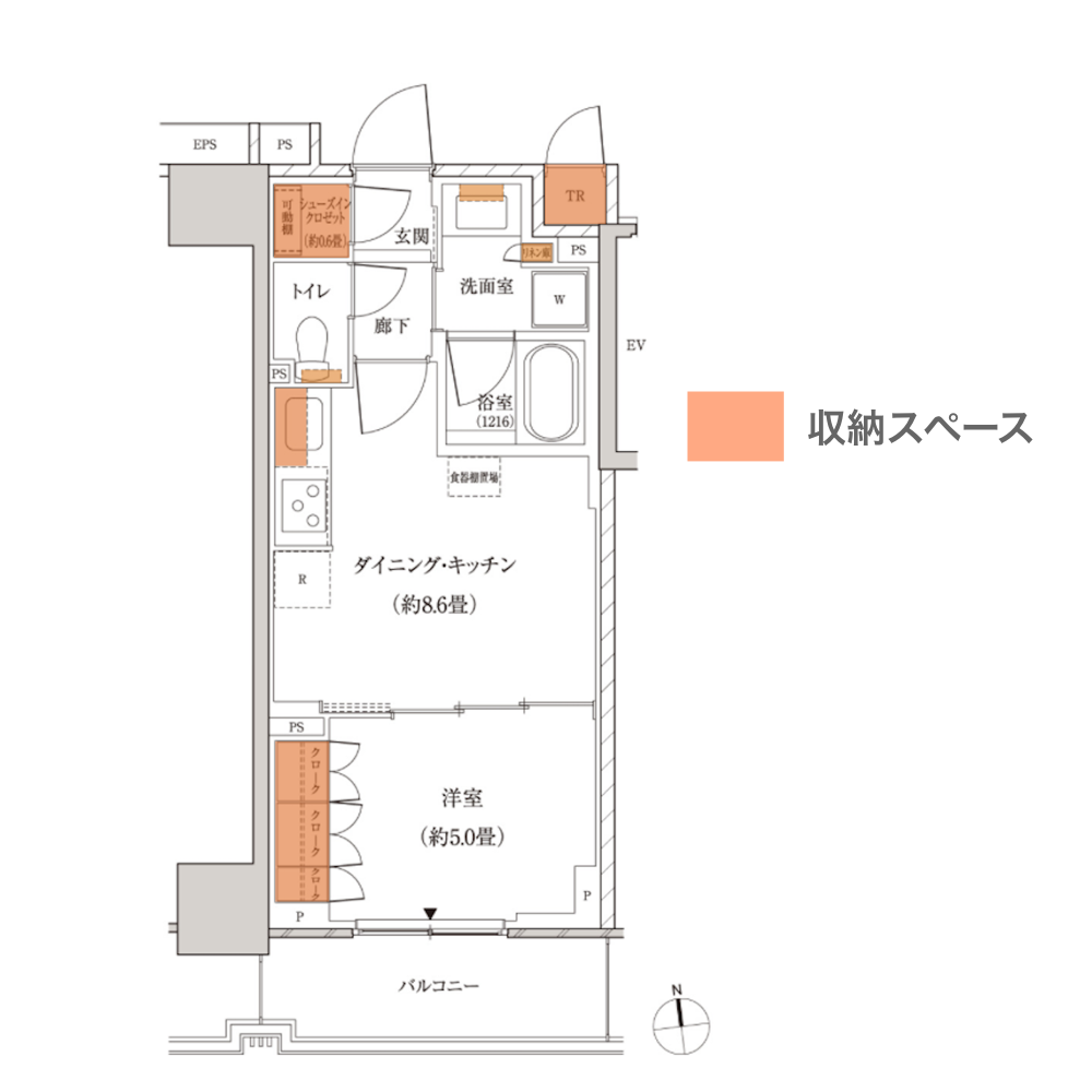 柱型によるロスもなく専有面積を有効活用できている間取りだと思います。