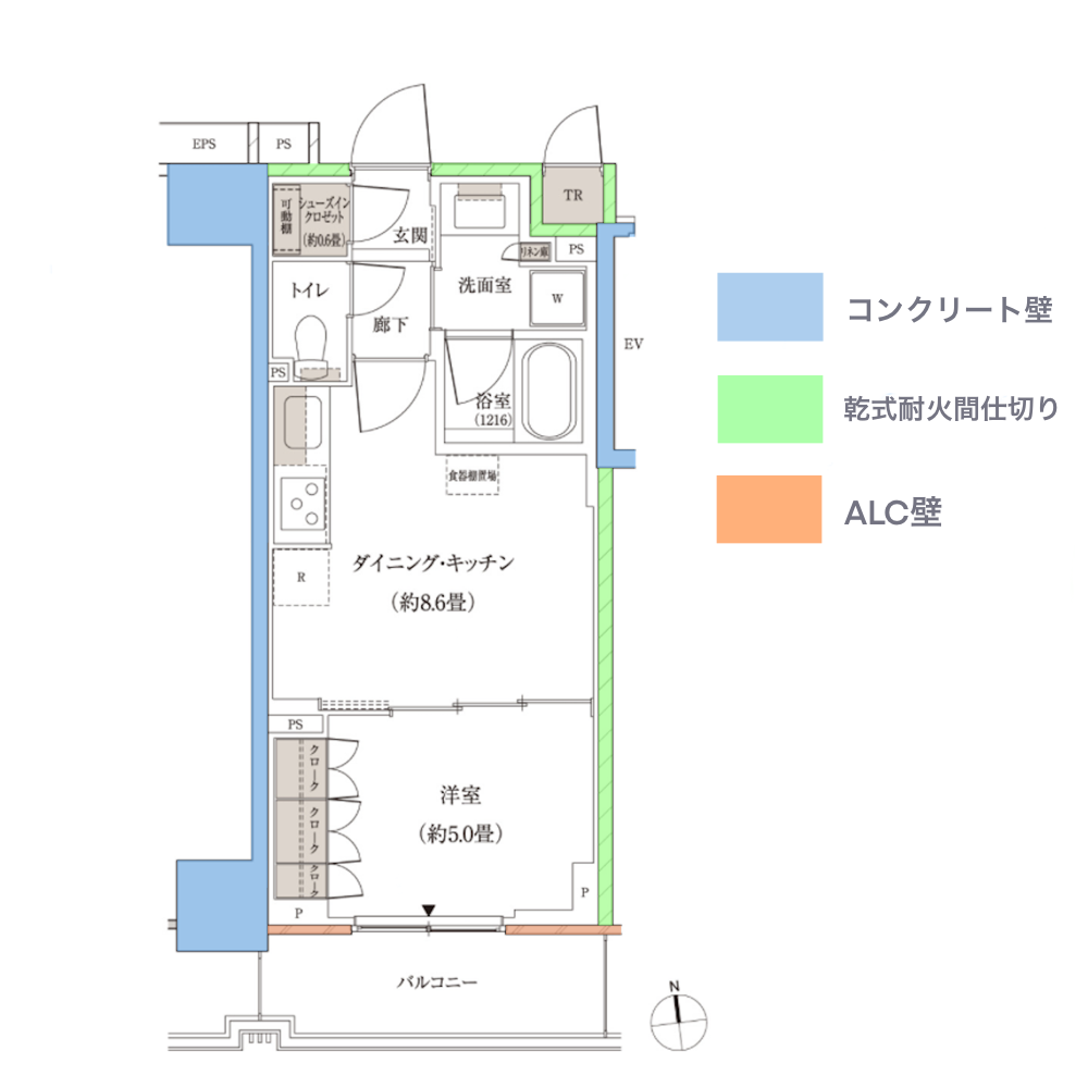 エレベーターシャフトがありますが水廻りを配置しているので音はほぼ聞こえないと思うよ。