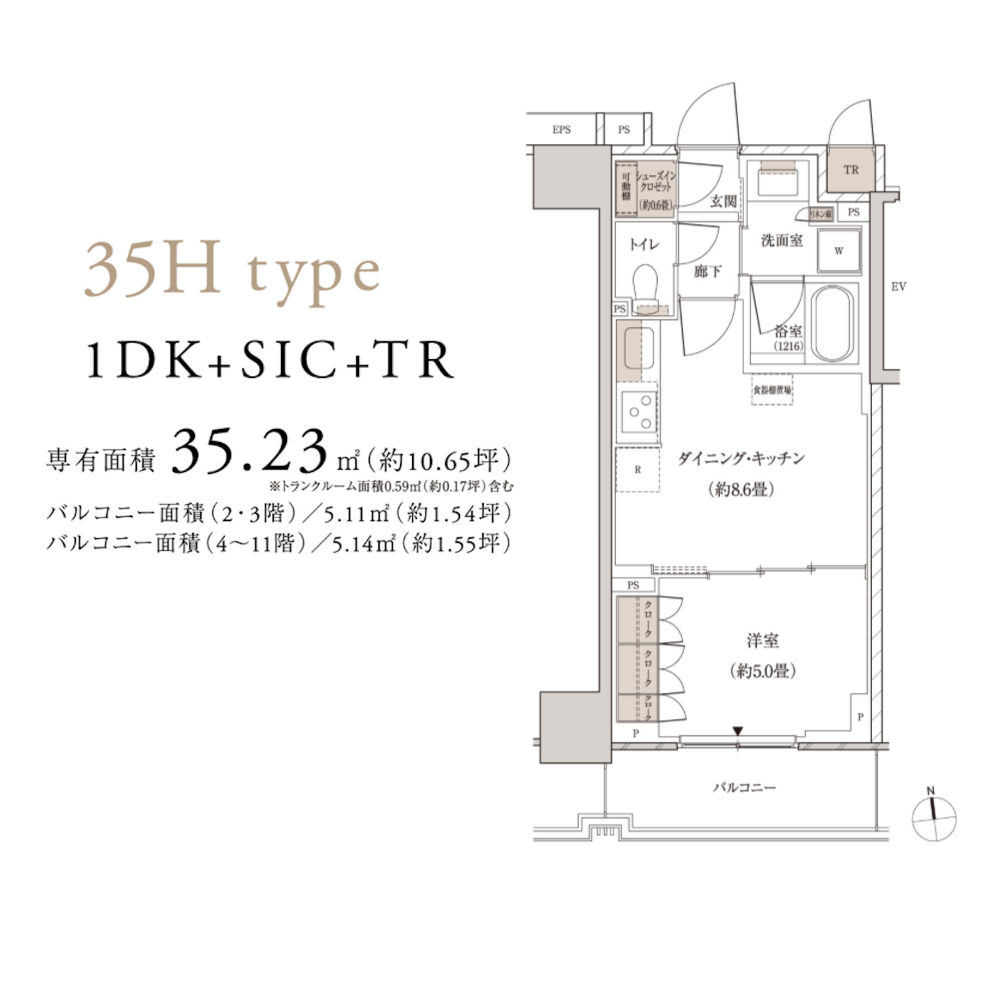 Hタイプは35.23m2にコンパクトにまとまった良い住戸だと思います。