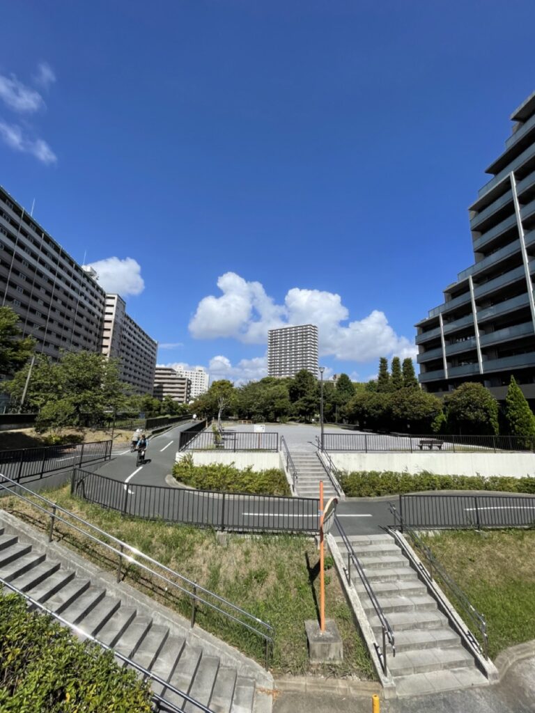 駅から建物に向かう道路も敷地に向かって下がっております。シティテラス南砂は1階に住戸がないので