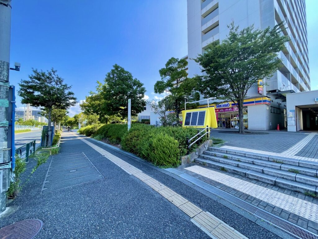 駅前にはコンビニもあり便利ですね。そしてなんといっても駅前の通りから物件が見えます。我が家を見ながら