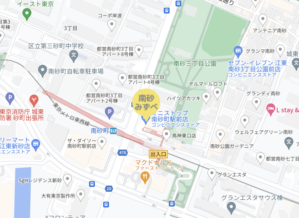 最寄りの「みずべ」は東西線南砂町のすぐ近くにあります。