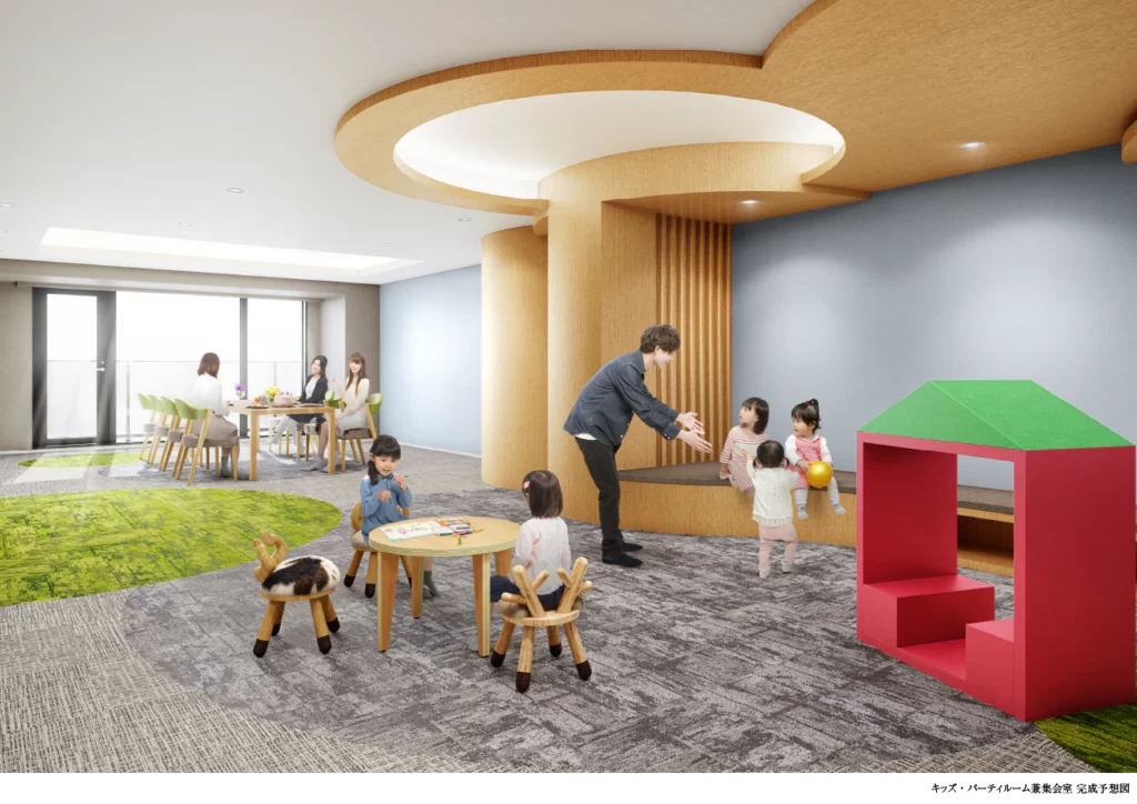 共用部としてキッズ・パーティールームが設けられており雨の日に子供を遊ばせておけたり、子供を見守りながら